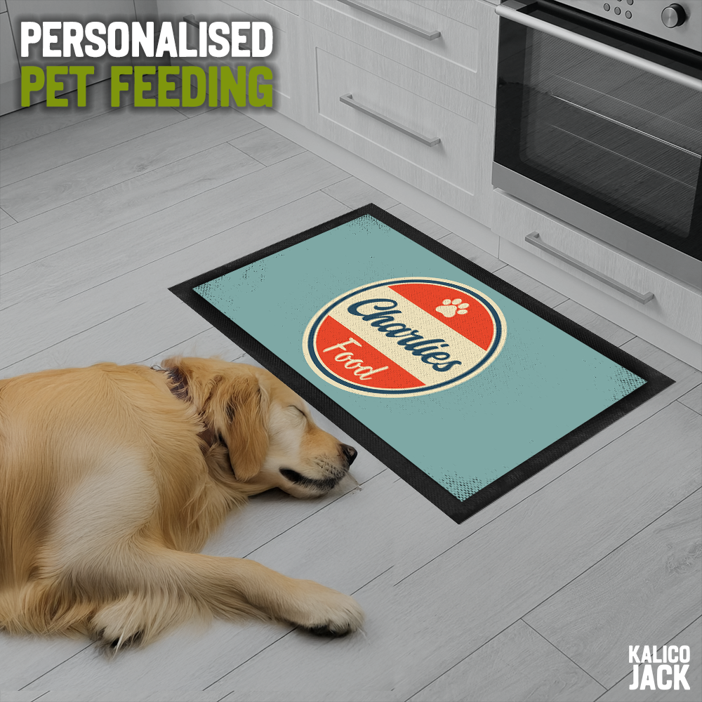 Your dog’s name sits proudly in bold retro script at the centre, giving their feeding spot a nostalgic charm that feels both fun and stylish. It’s clean, characterful, and full of personality—perfect for pups who appreciate a little old-school flair with their dinner.