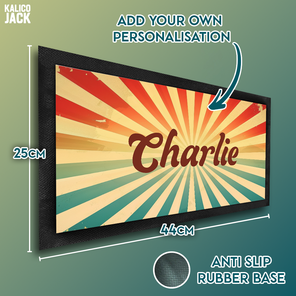 Perfect for dog owners who love retro design and bold colour, this personalised sunburst feeding mat also makes a fantastic gift for dog lovers who want something a little different, fun, and full of personality.