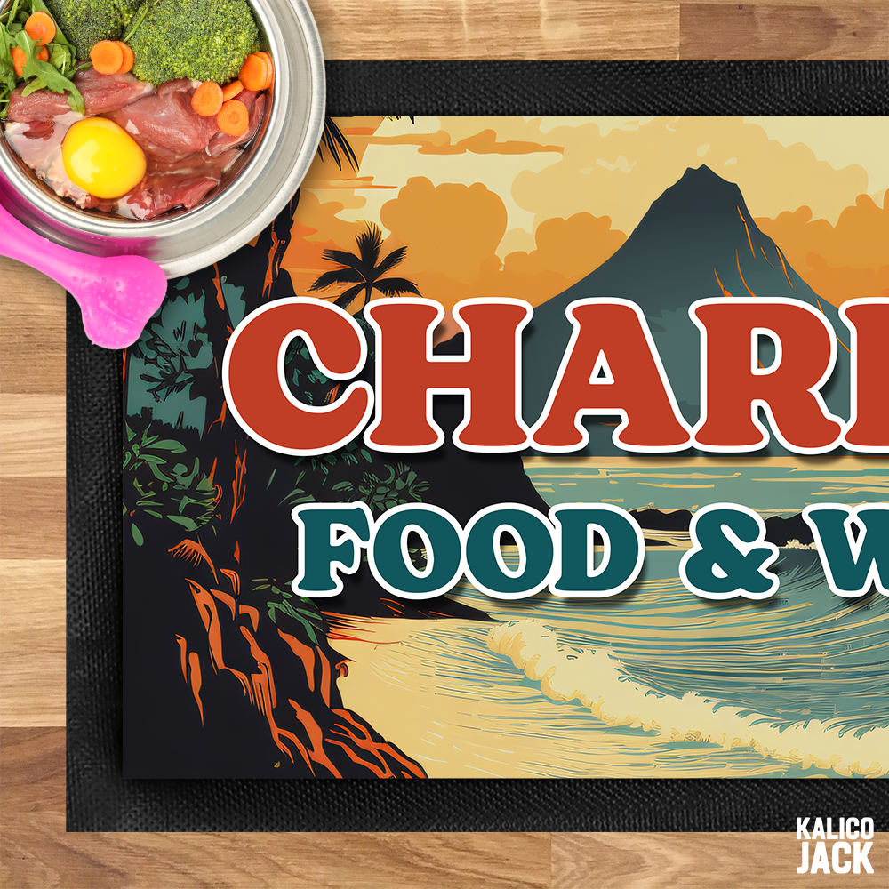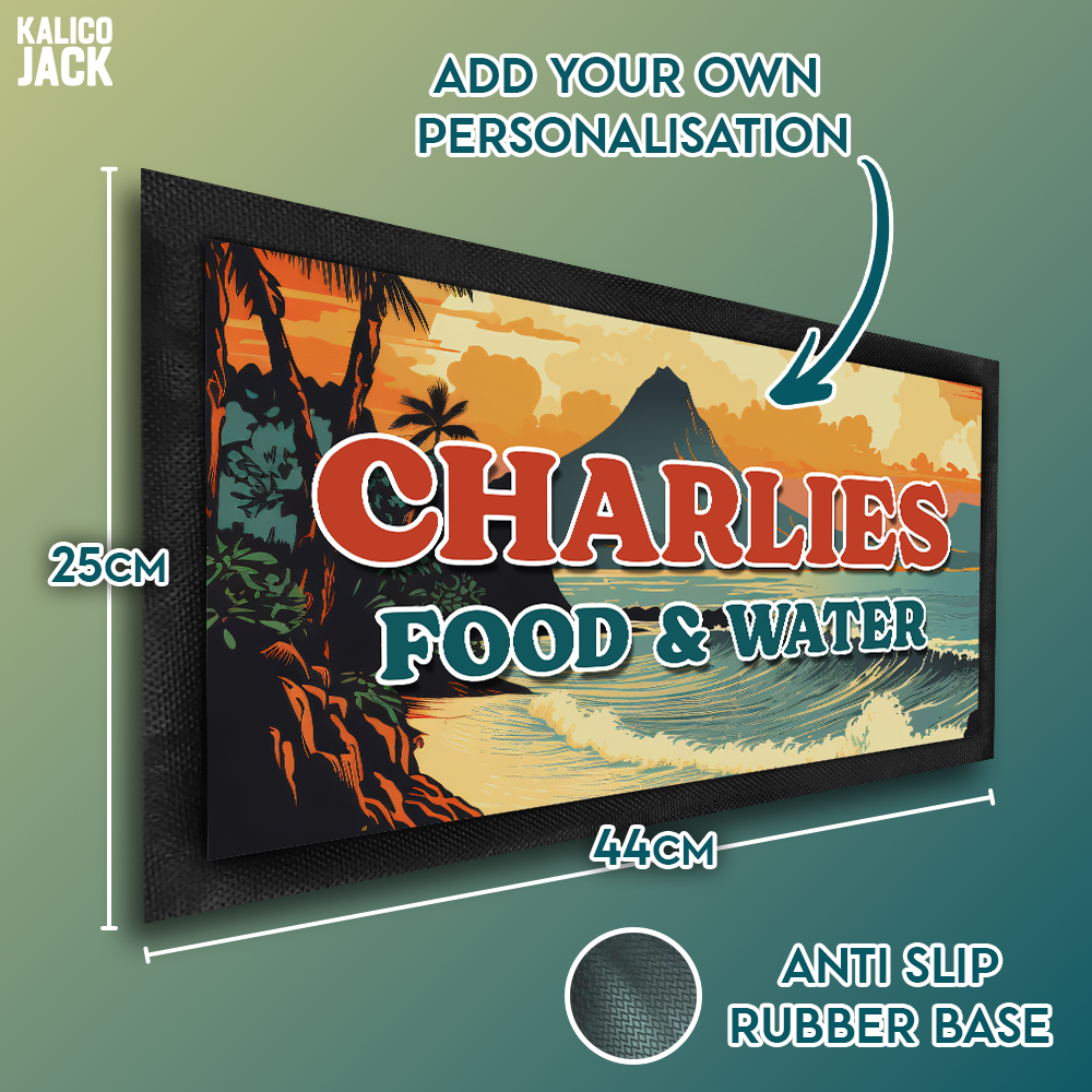 Customise the mat with your dog’s name to create a feeding space that feels totally their own. Whether they’re a beach-loving adventurer or more of a “nap in the shade” type, this tropical design adds personality and warmth to any kitchen, utility room, or feeding corner.